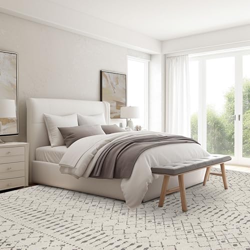 View full detailsDeerly Boho Area Rugs 9x12 for Living Room, Moroccan Farmhouse Washable Rug with Rubber Backing Cream Grey