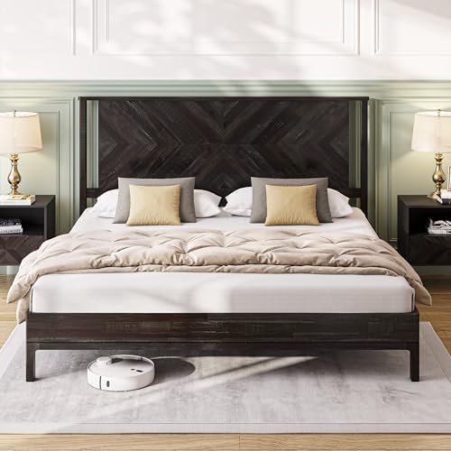 View full detailsBme Vivian 14 Inch Deluxe Bed Frame with Headboard, Rustic & Scandinavian Style with Solid Acacia Wood, No Box Spring Needed, 12 Strong Wood Slat Support, Easy Assembly, King, Rustic Black