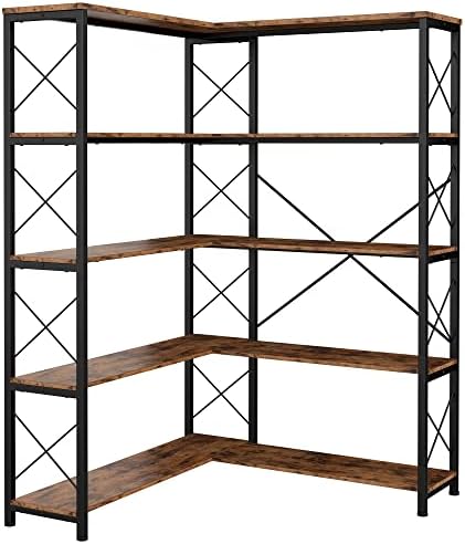 View full detailsIRONCK 5-Shelf Corner Bookcase, Vintage Industrial Corner Bookshelf Etagere Bookcase, 5 Tiers Corner Shelf Storage Rack with Metal Frame for Living Room Home Office