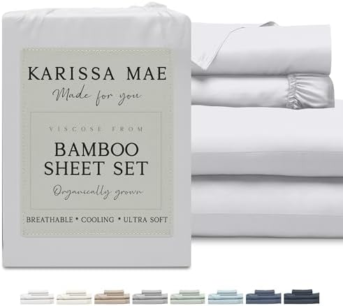 View full detailsKARISSA MAE Cooling Bamboo Viscose King Size Sheet Set | 100% Organically Grown | 18” Deep Pocket | Silky, Soft, & Hypoallergenic | with Organizer Band & Elastic Corner Straps [White]