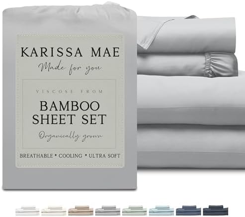 View full detailsKARISSA MAE Cooling Bamboo Viscose King Sheet Set | 100% Organically Grown | 18” Deep Pocket | Silky, Soft, & Hypoallergenic | with Organizer Band & Elastic Corner Straps [Grey Mist]