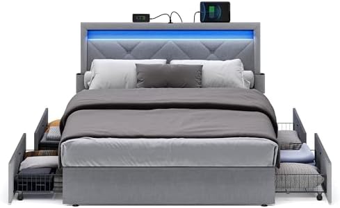 View full detailsVASAGLE LED Bed Frame Full Size, Full Bed with Headboard and 4 Drawers, 1 USB Port and 1 Type C Port, Adjustable Upholstered Headboard 37.1/39.6 Inches, No Box Spring Needed, Light Gray URMB822G01