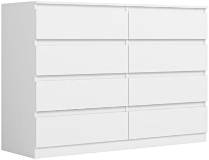 View full detailsVibe & Dine 8 Drawer Double Dresser, Modern Chest of Drawers with Wide Storage for Closet, Bedroom, Living Room, White