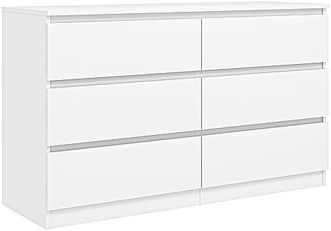 View full detailsVibe & Dine White Dresser 6 Drawer, Modern Double Dresser for Bedroom, Wood Chest of Drawers with Wide Storage for Living Room