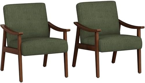 View full detailsYaheetech Corduroy Accent Chair, Mid-Century Modern Armchair with Solid Wood Legs, Reading Leisure Chair with High Back for Living Room Bedroom Waiting Room, Set of 2, Dark Green