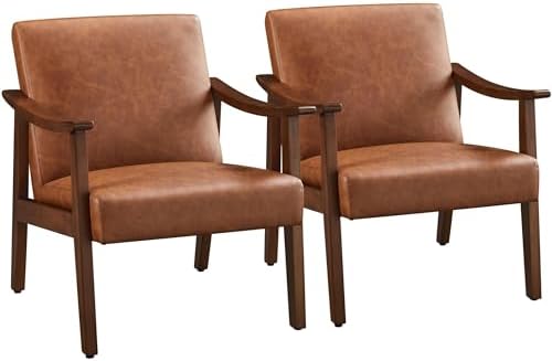 View full detailsYaheetech PU Leather Accent Chair, Mid-Century Modern Armchair with Solid Wood Legs, Reading Leisure Chair with High Back for Living Room Bedroom Waiting Room, Set of 2, Brown