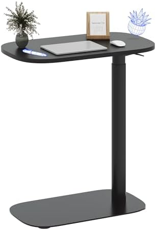 One-Touch Height Adjustment with Gas Spring Lift (25.4"-41.6"):Effortlessly customize your C-Shaped Table from bedside to standing desk height...