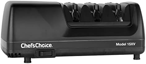 View full detailsChef’sChoice 15XV Professional Electric Knife Sharpener With 100-Percent Diamond Abrasives And Precision Angle Guides For Straight Edge and Serrated Knives, 3-Stage, Black