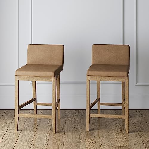 View full detailsNathan James Gracie Modern Counter Height Bar Stool with Back, Counter Stool Upholstered Chair with PU Leather and Brushed Wooden Legs, Light Brown, Set of 2