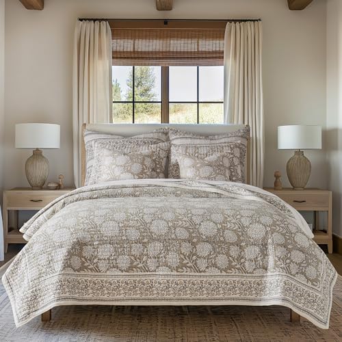 View full detailsLevtex Home Adare Taupe Reversible King/Cal King Quilt Set (106x92in) and 2 Pillow Shams (36x20in) - Floral Bedding - Taupe White - Cotton King Size Quilt Bedding Set - Lightweight, Soft, Pre-Washed