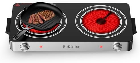 View full detailsElectric Cooktop, Dual 2200 Watts Infrared Burner, 2 Burner Electric Hot Plate for Cooking, Knob Control Countertop & Built-in Ceramic Cooktop, Overheat Protection Burner for Dorm, Kitchen