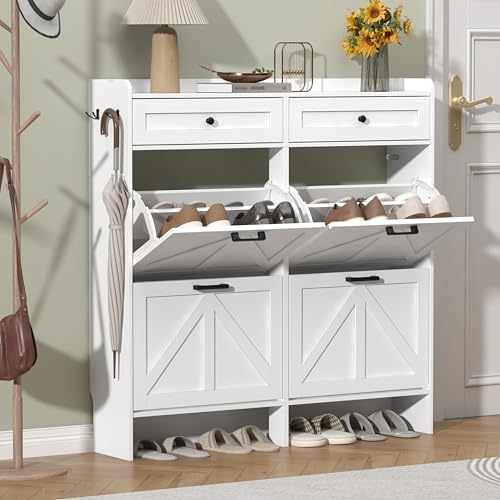 View full detailsShoe Cabinet with 2 Flip Drawers & 2 Storage Drawers, Rustic Farmhouse Narrow Shoe Organizer Cabinet, Slim Shoe Rack Cabinet, Shoe Storage Cabinet for Entryway, Hallway, Front Door