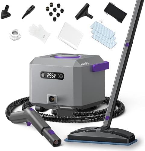 View full detailsSteam Cleaner: Fast 50-Sec Heat-Up-21-Piece Kit-0.6Gal (2.2L) Tank Refill Anytime-No Cooling-Detachable Hose Multi Steamer Mop for Home Car Bed Furniture Tile Grout Floor Kitchen Cleaning Grey