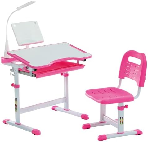 View full detailsDiroan Kids Functional Desk and Chair Set, Ergonomic Height Adjustable Children School Study Desk with Tilt Desktop, Book Stand, LED Light, Metal Hook and Storage Drawer for Boys Girls(Pink)