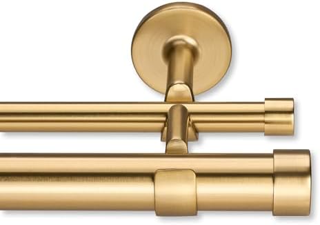 View full detailsMODE Cambria Designer Series - Premium 7 foot Custom Double Curtain Rod - 1-1/8 inch Large Diameter - Non-Adjustable for a Seamless Look - Premium Designer Brackets and End Caps - Brushed Gold Finish