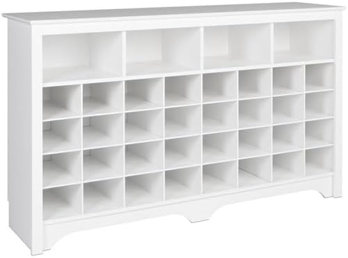 View full detailsPrepac White Console Table, Shoe Cabinet, Storage Cabinet with 32 Shoe Cubbies and 4 Large Storage Cubbies 15.5" D x 60" W x 35" H