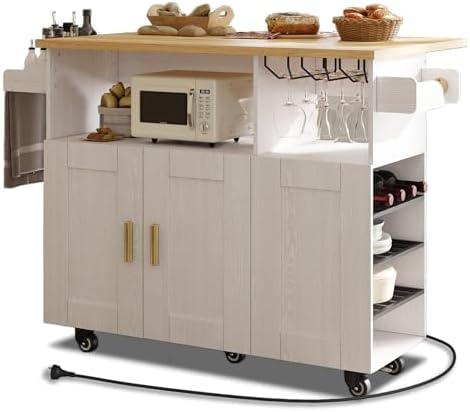 View full detailsRolling Mobile Kitchen Island,Island Table for Kitchen with Drop Leaf Countertop Power Socket, Roling Island Table with Storage on Wheels
