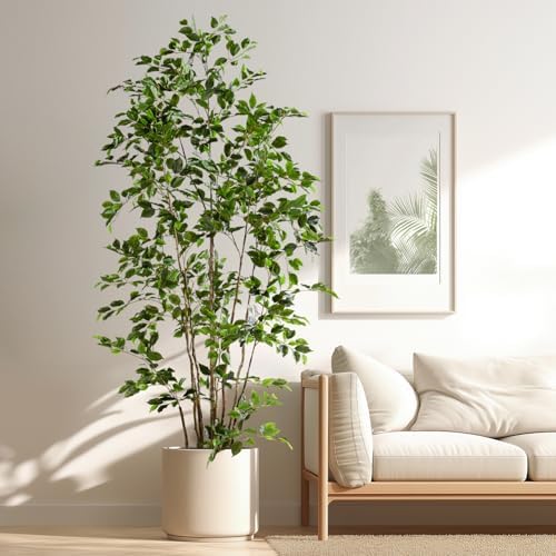 View full detailsArtificial Ficus Tree Indoor 7ft, Large Potted Faux Tree with Realistic Silk Leaves & Trunk for Home Office, Living Room Corner Decor