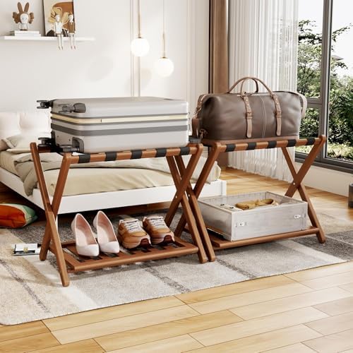 View full detailsFull Assembled 26.77" L Luggage Rack Set of 2 - Luggage Stand for Guest Room, Foldable Suitcase Stand with Shoe Shelf, Luggage Holder for Bedroom, Hotel (Walnut Bamboo Suitcase Holders)