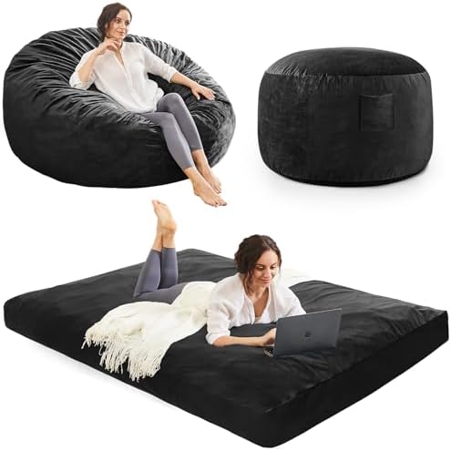 View full detailsBean Bag Chairs for Adults - Giant Bean Bag Chair Convertible Bean Bag Bed - Beanbag Chair with Microfiber Cover/Furniture Foam Filler - Floor Couch Sofa in Bedroom Dorm Room - Full Carbon Black