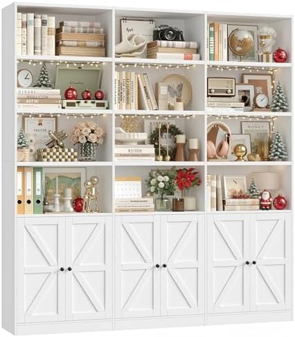 View full detailsFACBOTALL 75" Triple Wide Bookshelf, White Bookshelf and Bookcase with 6 Farmhouse Doors, 71" Wide 6 Tier Book Shelf with 18 Storage Shelves, Large Wooden Bookshelves, Tall Bookcase for Office, White