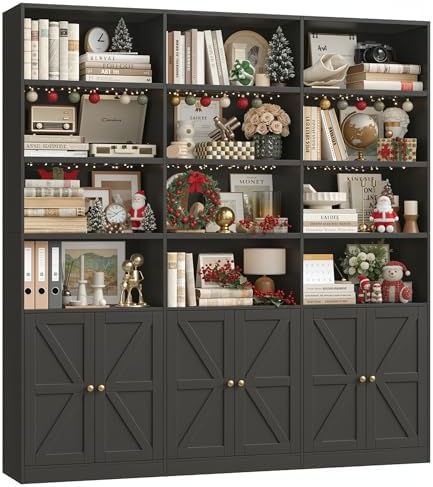 View full detailsFACBOTALL 75" Triple Wide Bookshelf, Bookshelf and Bookcase with 6 Farmhouse Doors, 71" Wide 6 Tier Book Shelf with 18 Storage Shelves, Large Wooden Bookshelves, Tall Bookcase for Home Office, Black