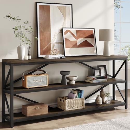 View full detailsONBRILL Industrial Console Sofa Table,70.8 Inch Extra Long Entryway Table with 3 Tier Wood Storage Shelf for Living Room, Hallway, Entrance, Narrow Sofa Table with Metal Frame, Black and Brown