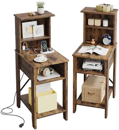View full detailsBestier Tall Nightstand Set of 2,Bedside Tables with USB and Charging Station Type C,Storage Dresser Night Stand, Narrow Nightstand with Cabinet Side Table for Bedroom Dorm, Brown