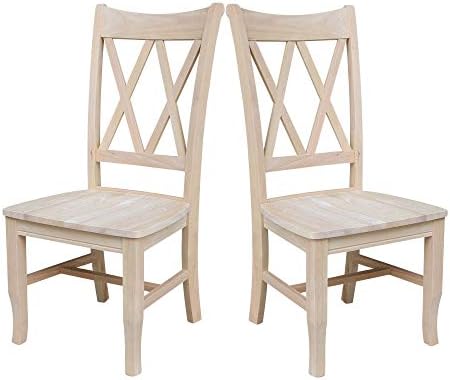 View full detailsIC International Concepts, Set of 2 Double X-Back Dining Chairs, Armless, Real Wood, Kitchen/Dining/Accent, 19.9"W x 22"D x 41.3"H, 225 Lbs Wt. Capacity, DIY, Paint/Stain In Any Color, Unfinished