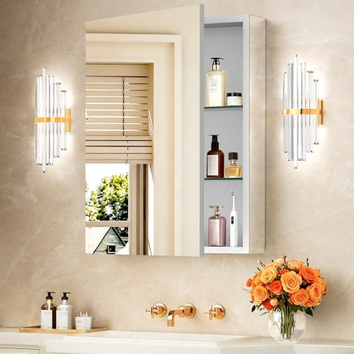 View full detailsBathroom Medicine Cabinet with Mirror, 20x26 Recessed or Wall Mirror Medicine Cabinet with Storage Adjustable Glass Shelves, Beveled Edge Mirrored Door with Aluminum Cabinet Hinges