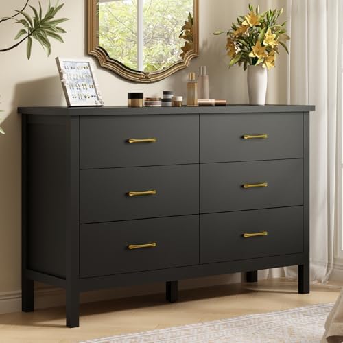 View full detailsBlack Dresser for Bedroom, 6 Drawer Wood Double Dresser with Gold Handles, Wide Chest of Organizer Storage Drawers for Living Room, Hallway, Entryway