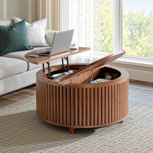 View full detailsEvermagin 31.5'' Walnut Round Coffee Table, Fluted Lift Top Coffee Table with Large Storage, Mid Century Modern Small Center Table for Living Room