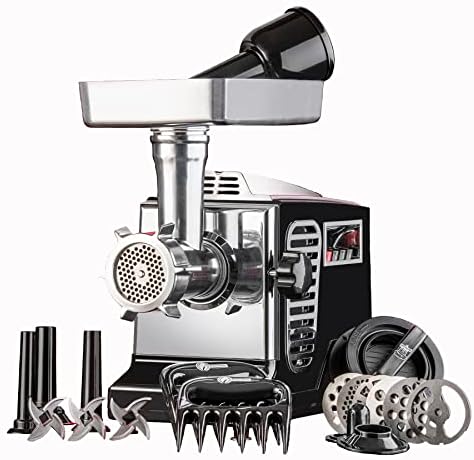 View full detailsSTX Turboforce II "Platinum" Heavy Duty Electric Meat Grinder & Sausage Stuffer: 6 Grinding Plates, 3 S/S Blades, 3 Sausage Tubes, Kubbe, 2 Meat Claws, Burger-Slider Patty Maker - Black
