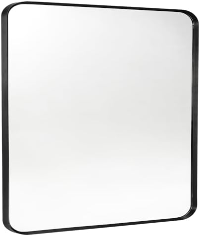 View full detailsBlack Metal Framed Bathroom Mirror for Wall, Brushed Matte Black Rounded Corner Rectangular Bathroom Vanity Mirror, Anti-Rust, Tempered Glass (30" x 36", Black)