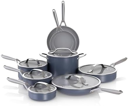 View full detailsNinja Ceramic Pro 14-Piece Cookware Set, Non-Stick Pots & Pans Set with Glass Lids, Nontoxic, PTFE Free, Ceramic Coated, Oven Safe, All Stovetops & Induction Compatible, Midnight Blue, CW39014MM