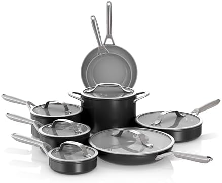 View full detailsNinja Ceramic Pro 14-Piece Cookware Set, Non-Stick Pots & Pans Set with Glass Lids, Nontoxic, PTFE Free, Ceramic Coated, Oven Safe, All Stovetops & Induction Compatible, Black, CW39014BK