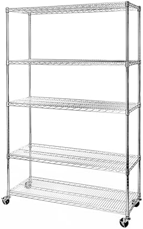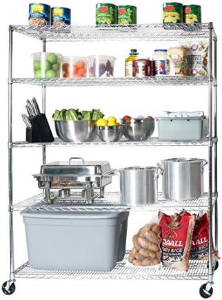 View full detailsSeville Classics UltraDurable Heavy Duty NSF Solid Steel Wire Rack Storage Unit Wheels, 5-Tier Shelving, 60" W x 24" D