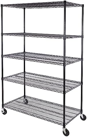 View full detailsSeville Classics UltraDurable Heavy Duty NSF Solid Steel Wire Rack Storage Unit, Organizer for Garage, Warehouse, Office, Restaurant, Classroom, Kitchen, Black, 5-Tier Shelving, 48" W x 18" D