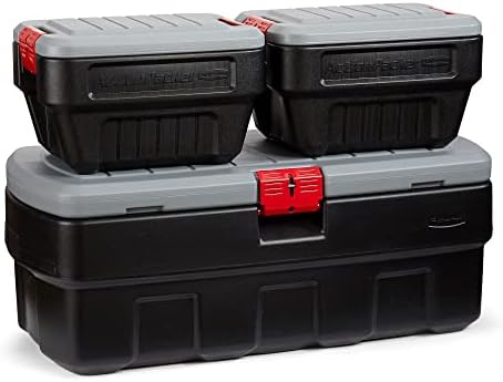 View full detailsRubbermaid ActionPacker 35 Gallon, Made in USA, Lockable Plastic Storage Bin with Lid and Wheels- Outdoor, Industrial, Rugged, Camping Gear and Truck Bed Storage - Gray and Black