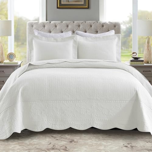 View full detailsMarCielo 3-Piece 100% Cotton Oversized Bedspread Lightweight Quilt Coverlet Embroidery Farmhouse Bedding Set (TG Bright White, Oversized Queen (100"x106"))