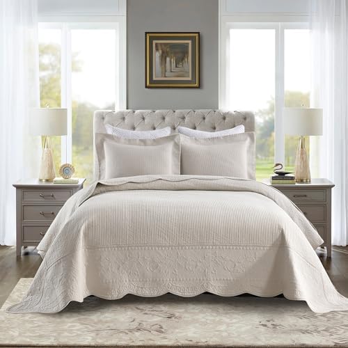 View full detailsMarCielo 3-Piece 100% Cotton Oversized Bedspread Lightweight Quilt Coverlet Embroidery Farmhouse Bedding (Tf Khaki Beige, Oversized King (118"x106"))
