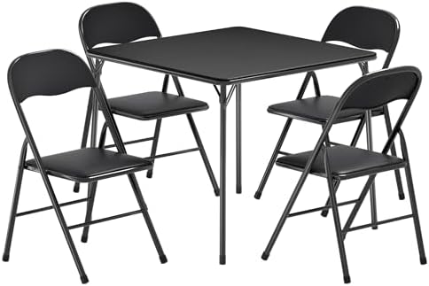 View full detailsVECELO Folding Card Table and Chair Set of 5 Foldable with Padded Upholstery Tabletop, Metal, Black