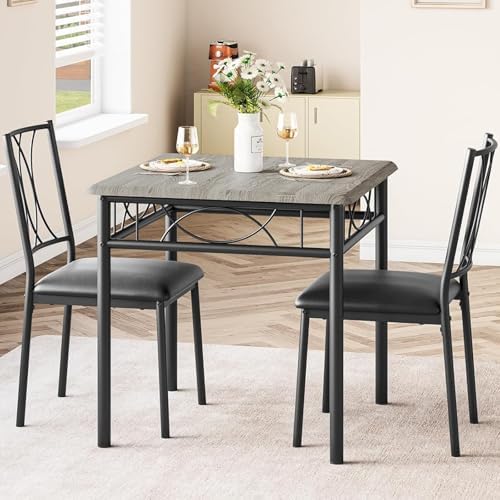 View full detailsCABIHOME Dining Table Set for 2, 3 Piece Kitchen Table Set with 2 Upholstered Chairs, Square Kitchen Table Set for Small Space, Apartment, Dining Room, Retro Gray
