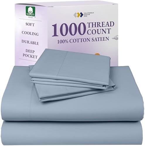 View full detailsCalifornia Design Den King Sheets Set - Luxury 1000 Thread Count Sateen, Thick and Natural 100% Cotton Bed Sheet Set, Deep Pockets, Durable Bedding - Blue