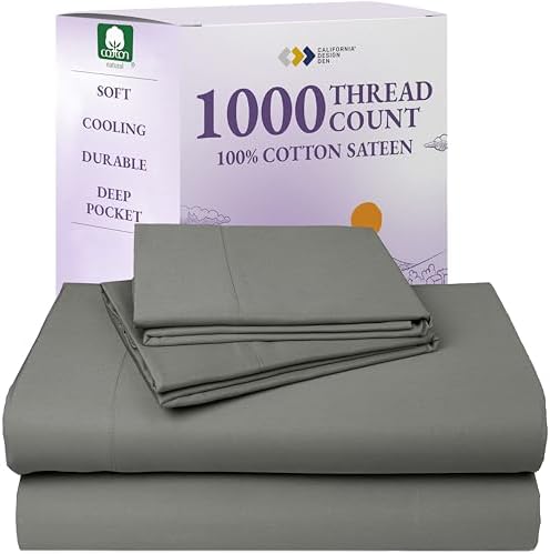 View full detailsCalifornia Design Den King Bed Sheets Set - Luxury 1000 Thread Count Sateen, Thick and Natural 100% Cotton Sheets for King Size Bed, Deep Pockets, Durable Bedding Set - Grey