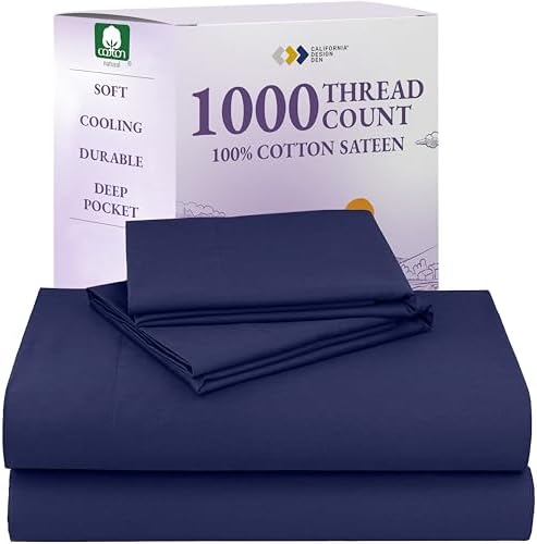 View full detailsCalifornia Design Den King Sheets Deep Pocket Set - Luxury 1000 Thread Count Sateen, Thick and Natural 100% Cotton Bed Sheets for King Size Bed, Durable Bedding Set - Navy Blue