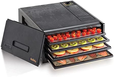 View full detailsExcalibur Electric Food Dehydrator Machine 4-Tray with Adjustable Thermostat, Accurate Temperature Control and Fast Drying with 4 Square Feet of Drying Space, 250-Watts, Black