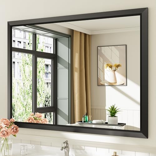 View full details36x32 Inch Black Bathroom Mirror for Wall, Thick Metal Framed Rectangle Mirrors for Over Sink, Bedroom, Living Room, Entryway, Anti-Rust, HD Tempered Glass