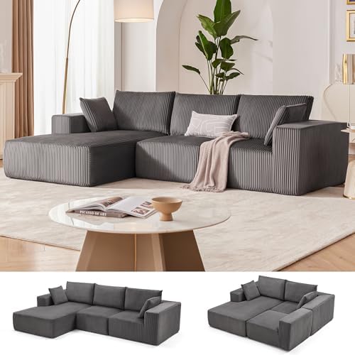 View full details108” Modular Sectional Sofa, Cloud Sectional Couch with Deep Seat, Modern Modular L-Shape Sofa with Chaise,Upholstered Couches for Living Room (Corduroy, Beige)