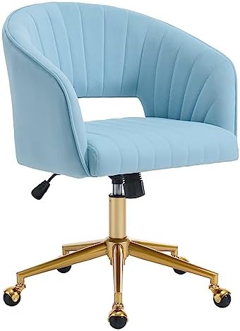 View full detailsHome Office Chair Swivel Velvet Desk Chair Accent Armchair Upholstered Modern Tufted Chairs with Gold Base for Girls Women Ergonomic Study Seat Computer Task Stools for Living Room(Blue)